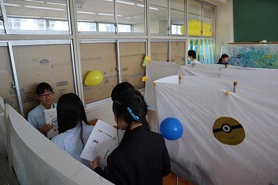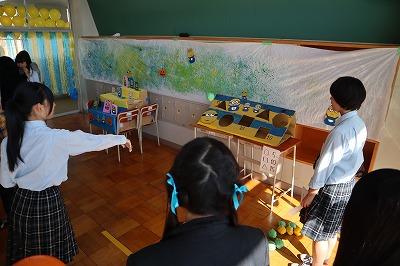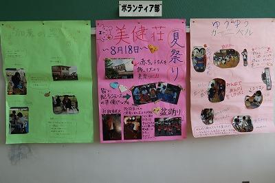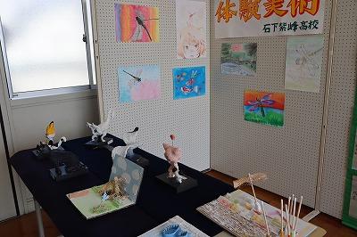 校内では,美術部・ボランティア部・体験ボランティア・書道部・体験美術の展示,4クラスの企画がありました。
