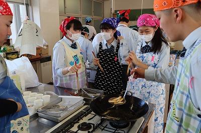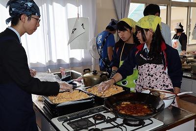 文化祭の舞台裏,調理室ではひたすら混ぜる・焼く・揚げるなど・・・本当にお疲れ様でした。